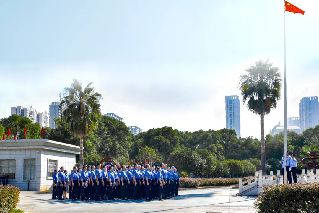 伴随着雄壮激昂的国歌,鲜艳的五星红旗冉冉升起,迎风飘扬。全体检察人员身着制服,列队肃立,面向国旗,行注目礼,共同祝愿伟大的祖国生日快乐、繁荣昌盛。