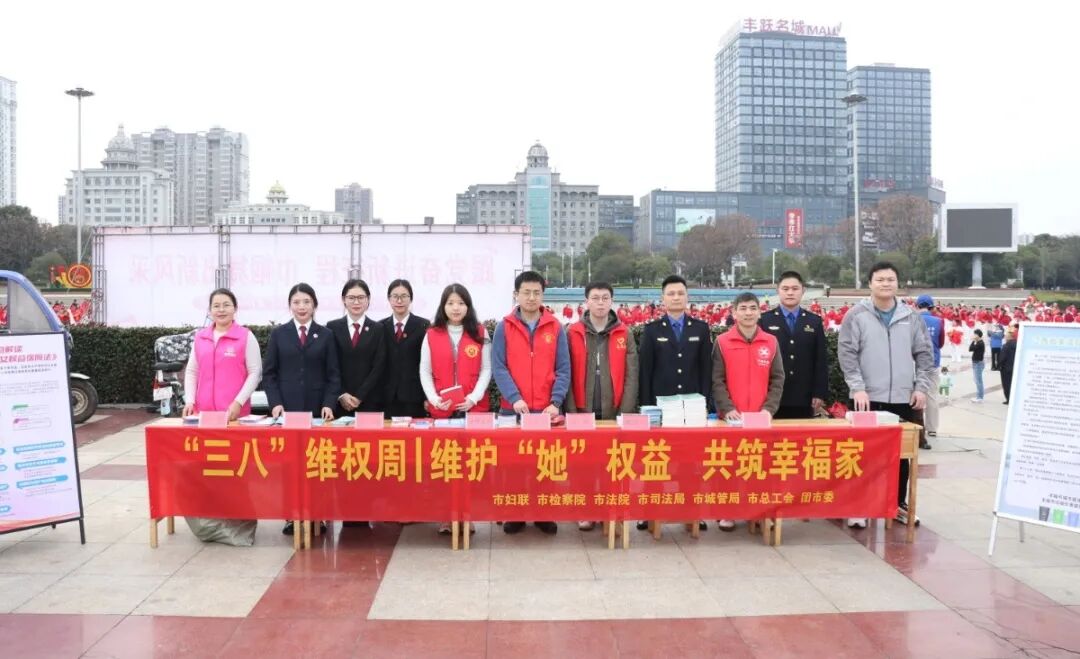 为进一步深化妇女法治宣传教育,更好维护妇女合法权益,近日,在第115个“三八”国际妇女节来临之际,丰城市人民检察院联合多家单位开展“维护'她'权益,共筑幸福家”普法宣传活动,以检察力量为妇女撑起法治晴空。