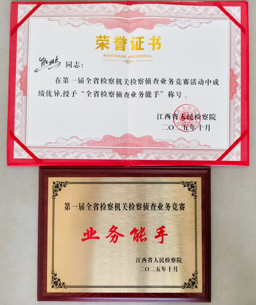 近日,第一届全省检察机关检察侦查业务竞赛圆满落下帷幕,经过激烈角逐,丰城市人民检察院党组成员熊鹏同志荣获“全省检察侦查业务能手”称号!